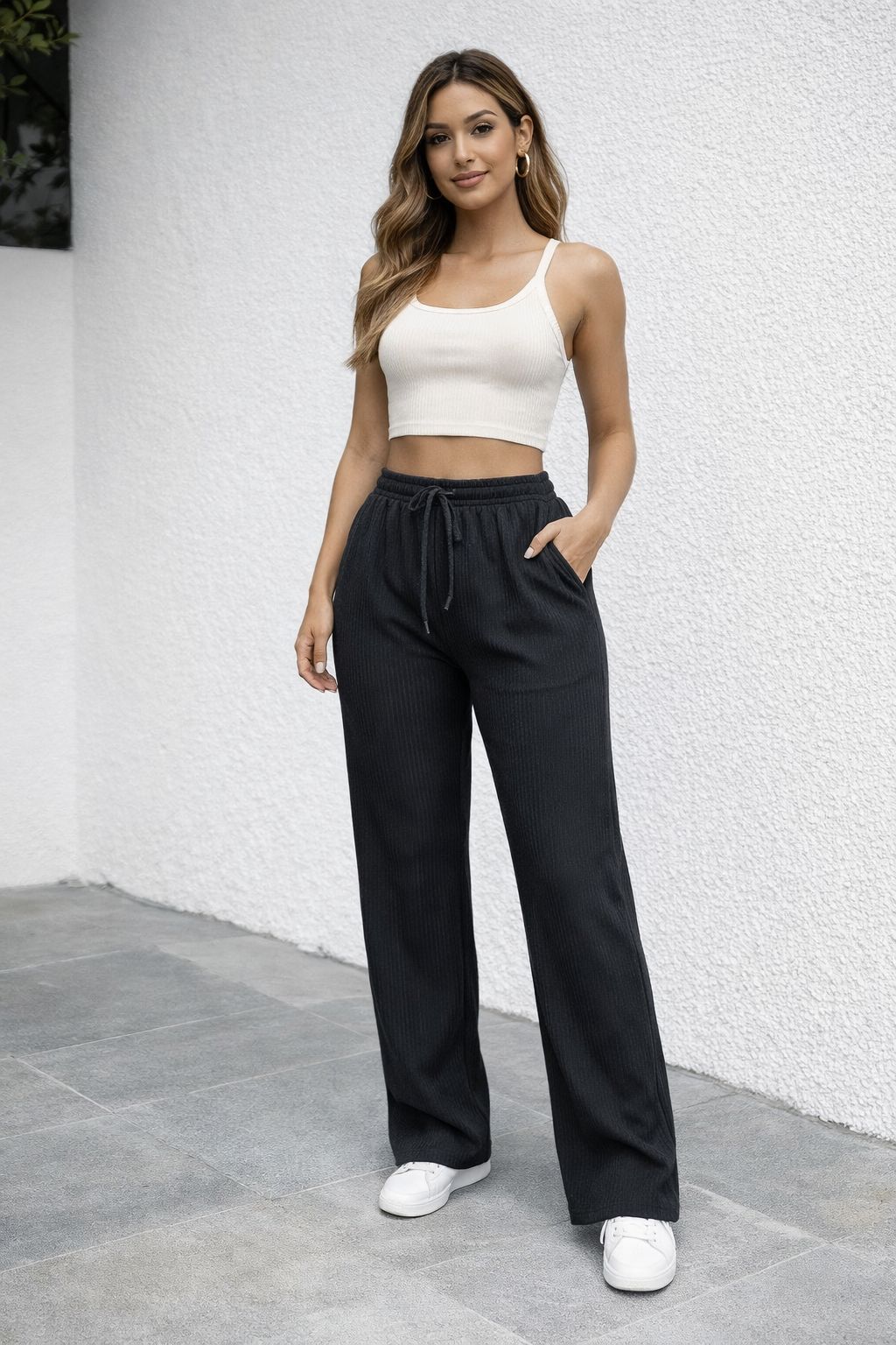 Nuestro Pantalón Sudadera Acanalado para dama combina comodidad, estilo y versatilidad en una sola prenda. Confeccionado en tela acanalada de alta calidad, ofrece una textura suave, flexible y moderna que realza la caída natural del pantalón.